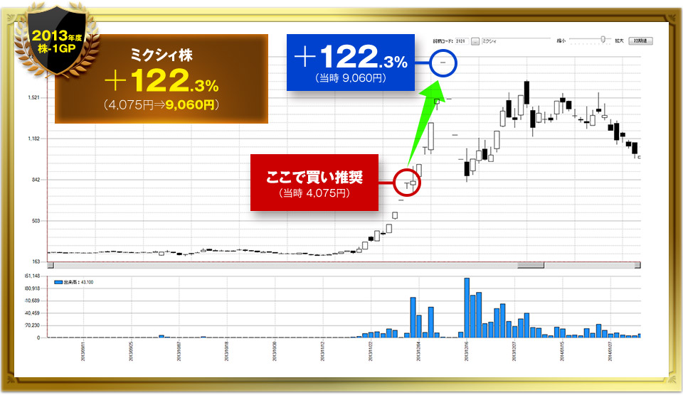※ご紹介している内容は、本サービスと同じ方法で抽出した、夕刊フジ株1グランプリでご紹介したものを掲載しております。