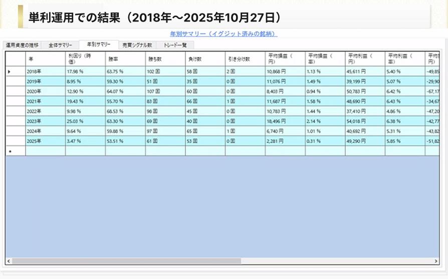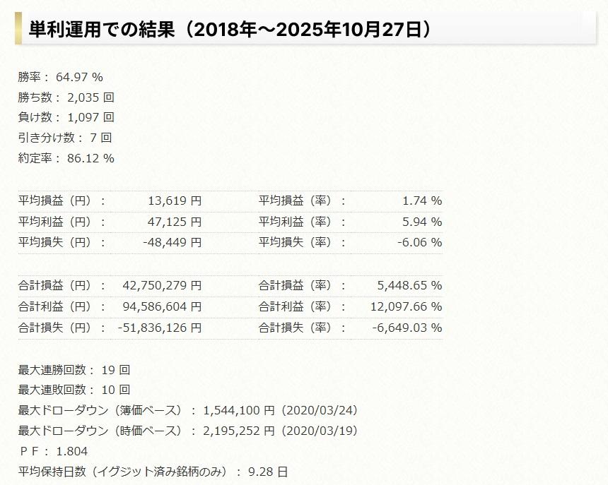 配信される銘柄の成績です。